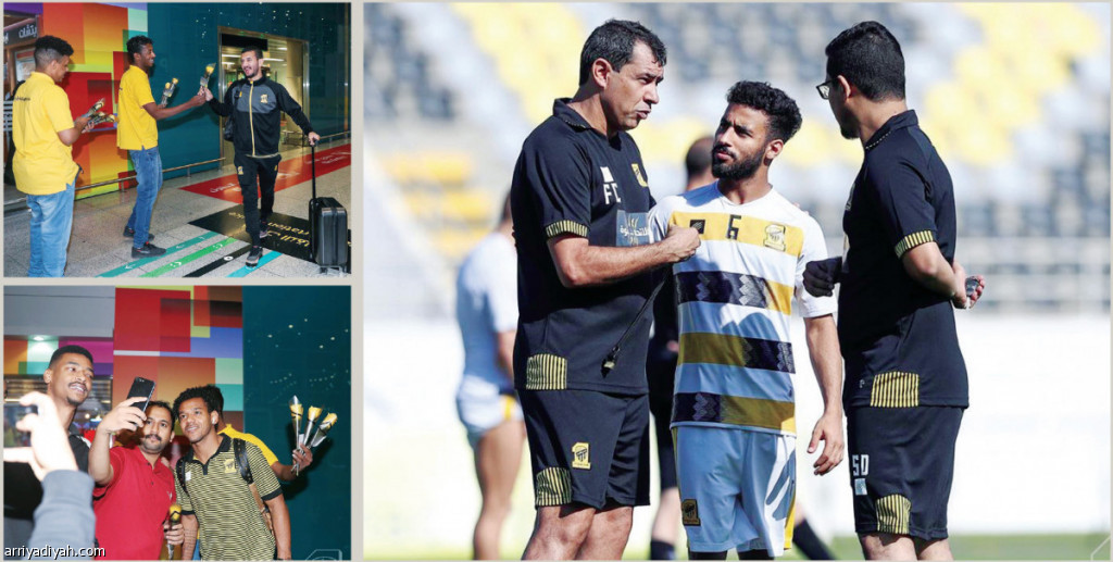 في الصور التي التقطت أمس يتحدث البرازيلي فابيو كاريلي مدرب الاتحاد الجديد مع خالد السميري لاعب الوسط خلال الحصة التدريبية.. وعضوان من مجلس جمهور النادي يستقبلان عبد الإله المالكي لاعب الوسط بالورود.. ومشجع اتحادي في الرياض يلتقط صورة “سيلفي” مع البرازيلي رومارينهو المهاجم (المركز الإعلامي ـ الاتحاد)