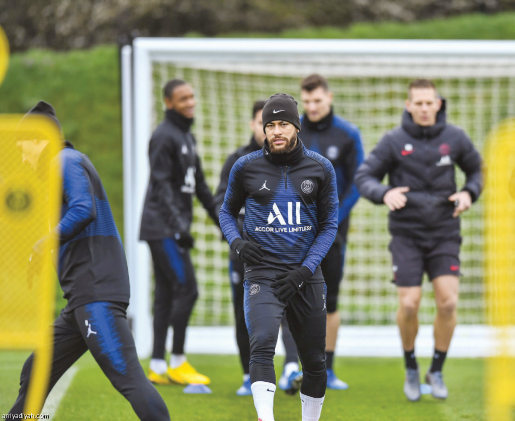 صورة التقطت أمس للبرازيلي نيمار يشارك في تدريبات باريس سان جيرمان استعدادًا لاستضافة بروسيا دورتموند اليوم (المركز الإعلامي ـ باريس سان جيرمان)