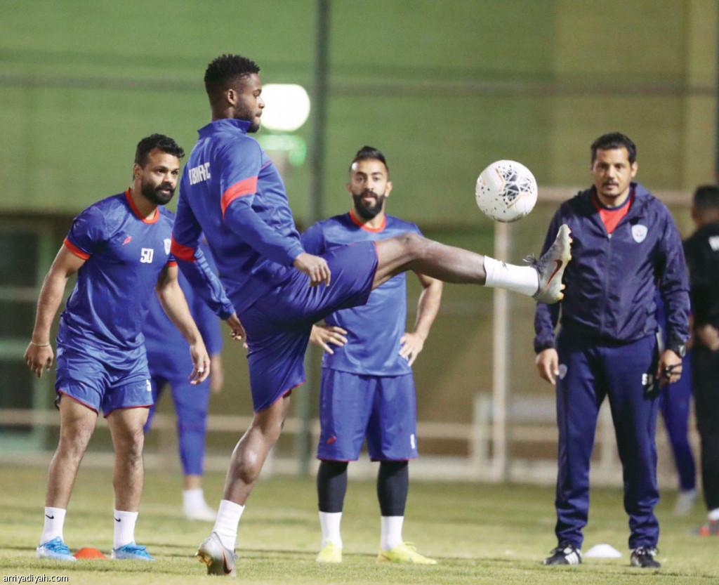 صورة التقطت أمس فراس الشواط لاعب الفريق يستعرض بالكرة أثناء التدريبات.. ويبدو جهاد زويد وأسامة عاشور زميلاه (المركز الإعلامي ـ أبها)