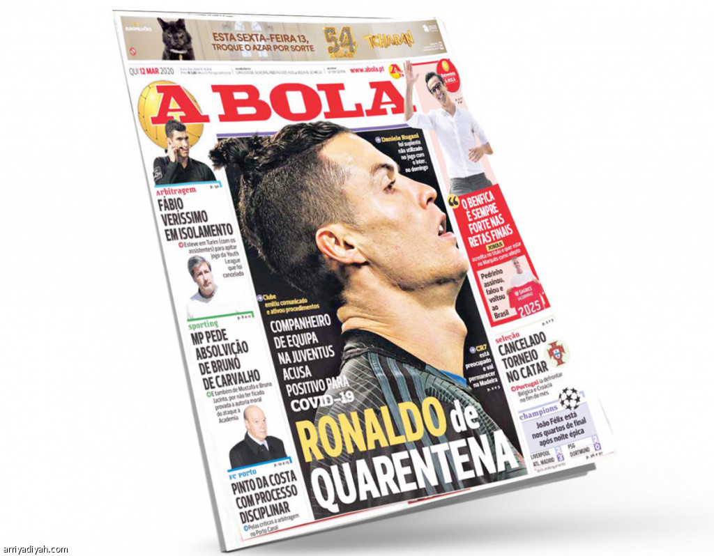 وركزت أغلفة الصحافة البرتغالية على الحجر الصحي الذي فرضه رونالدو على نفسه وأسرته، ومنها “أيه بولا”، و”سبورتيفو”.