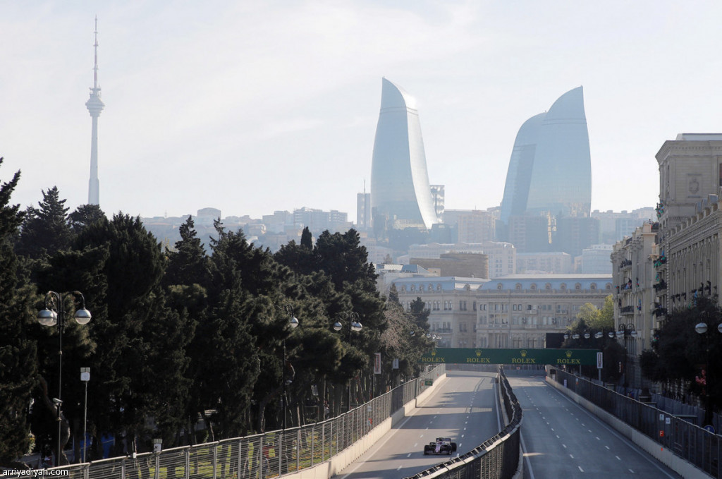 صورة التقطت لحلبة فورمولا 1 في مدينة باكو عاصمة أذربيجان خلال موسم سباق السيارات العام الماضي(أرشيفية)