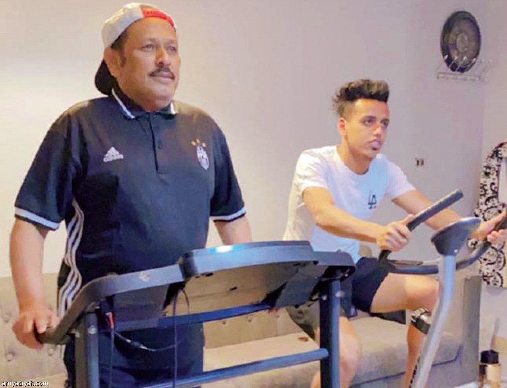 يخضع إسماعيل عمر، لاعب فريق جدة الأول لكرة القدم، يوميًّا لتدريبات خاصة في منزله، بمساعدة والده عمر الذي يشارك مع ابنه على الأجهزة المخصصة للياقة.