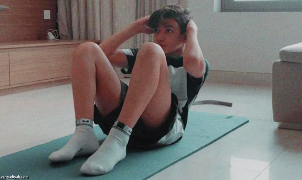 يشرف السعودي هاشم أبو الرحى مدرب لعبة تنس الطاولة على تدريبات ابنه هادي لاعب المنتخب السعودي وفريق مضر للناشئين اليومية داخل منزلهم في القديح.