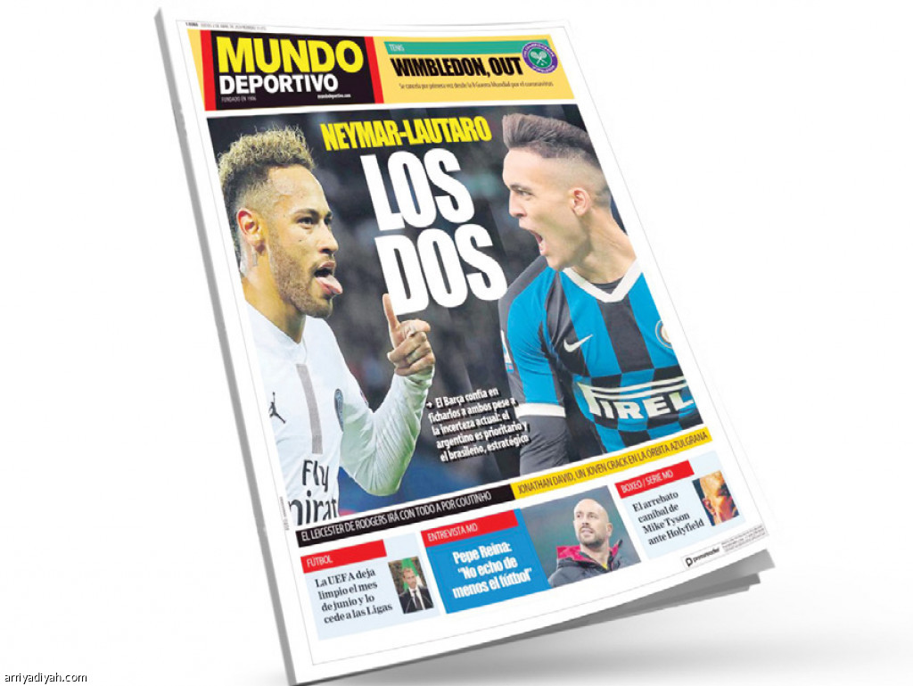 كشفت صحيفة “موندو ديبورتيفو”، الكاتالونية أمس، عن أن نادي برشلونة يؤمن بقدرته على إتمام صفقتي البرازيلي نيمار، والأرجنتيني لاوتارو مارتينيز مهاجمي باريس سان جيرمان الفرنسي وإنتر ميلان الإيطالي، بدلا من صفقة واحدة فقط. وعنونت الصحيفة على غلاف عدد أمس “الاثنان معا”، ووضعت إلى جانبه صورتي اللاعبين. إلا أن الأمر يتطلب استغناء برشلونة عن أحد مهاجميه.