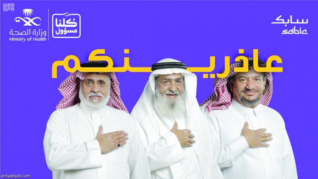 أطلقت وزارة الصحة، بالشراكة مع “سابك”، حملة توعوية تحت شعار “عاذرينكم”، تتضمن رسالة صادقة موجَّهةً من كبار السن من الآباء والأمهات إلى أبنائهم، تحمل عبارة “عاذرينكم”. وتتماشى هذه الحملة مع النصائح والإرشادات التوعوية، التي أصدرتها “الصحة” لتأكيد أهمية التباعد الاجتماعي، وعدم المصافحة منعًا للإصابة بفيروس كورونا الجديد “كوفيد 19”.