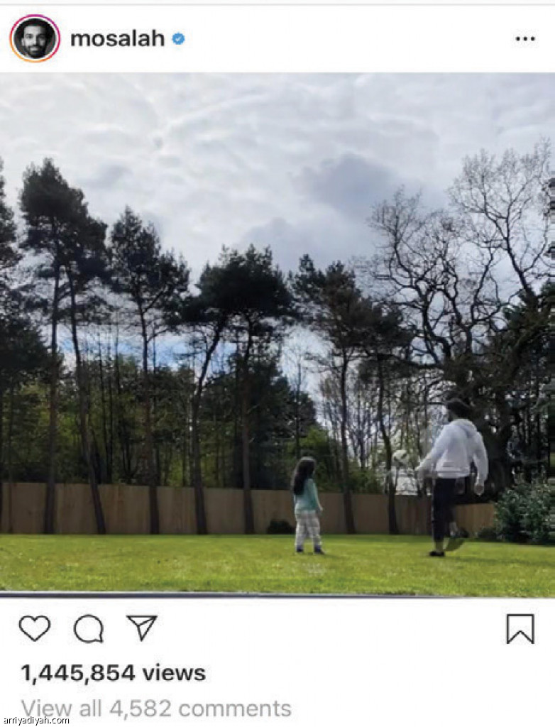 وظهر صلاح في الفيديو، الذي نشره على حسابه الرسمي في إنستجرام، يؤدي التدريبات مع ابنته، ويلعبان الكرة سويًّا في حديقة المنزل. وحصل الفيديو على 1.4 مليون مشاهدة، و4.559 تعليقًا.