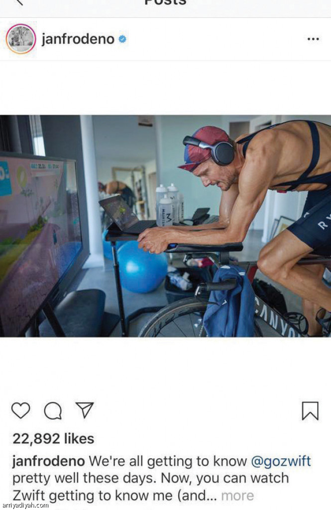 يخطِّط الألماني يان فرودينو، بطل العالم ثلاث مرات في رياضة الترايثلون “السباق الثلاثي”، لإكمال سباقات اللعبة المعروفة بـ “الرجل الحديدي” أثناء خضوعه للعزل الذاتي في منزله في مدينة جيرونا الإسبانية بسبب تفشي فيروس كورونا المستجد.
