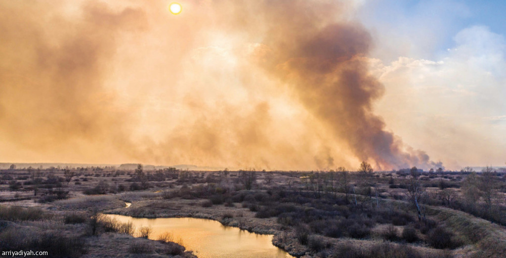 صورة التقطت أمس لغابات تشرنوبل في أوكرانيا أثناء اندلاع الحريق الذي استمر أكثر من أسبوع (الفرنسية)