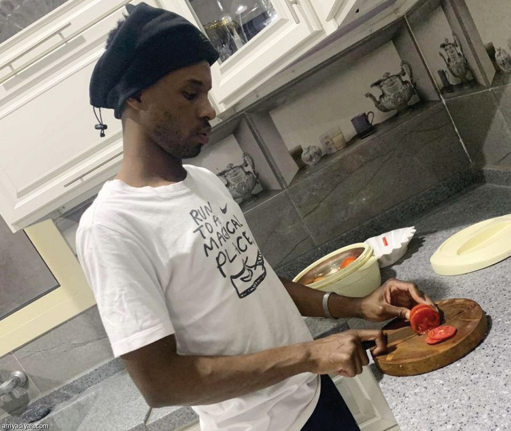 صورة التقطت أمس لعوض خريص لاعب فريق العدالة يمارس هواية الطبخ بمنزله في نجران (صورة خاصة بالرياضية)