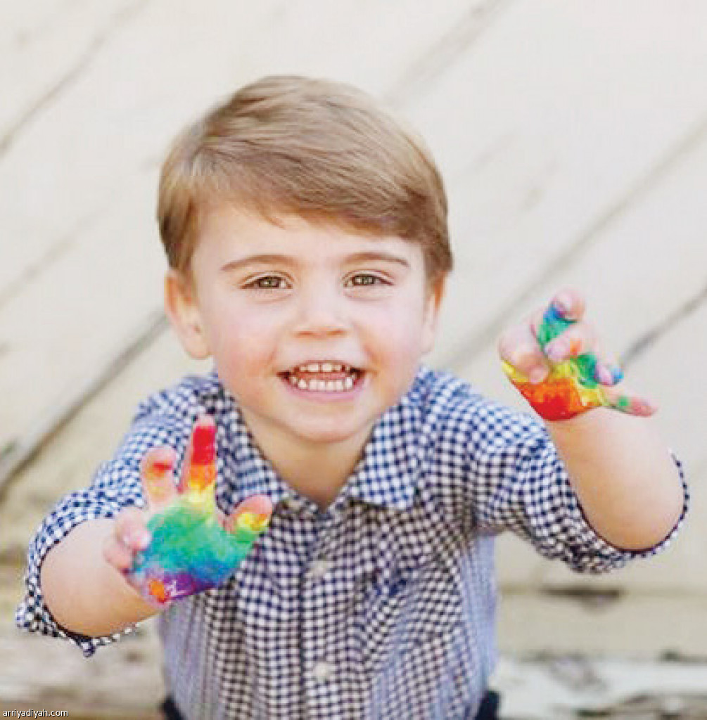 نشر ويليام، الأمير البريطاني، وكيت ميدلتون، زوجته، صورًا جديدة للأمير لويس، ابنهما الأصغر، يرسم قوس قزحٍ، رمزُ الأمل في بريطانيا، وسط أزمة تفشي فيروس كورونا المستجد. وتُظهر الصور الخمس المنشورة للأمير الصغير يديه ملطختين بالألوان أثناء رسم قوس القزح، مثل العديد من الأطفال في بريطانيا، الذين رسموا لوحات مشابهة، ووضعوها على نوافذ منازلهم. وقال قصر كينسينجتون: إن جميع الصور التقطتها كيت في الشهر الجاري في منزلهم، شرق إنجلترا، الذي يقيمون فيه أثناء فترة العزل العام بسبب تفشي فيروس كورونا.