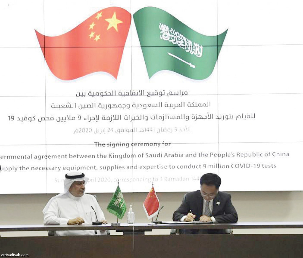وقيمة العقد الموقّع مع الصين 995 مليون ريال سعودي، تشمل الاستعانة بـ 500 من الاختصاصيين والفنيين الصينيين، وإنشاء 6 مختبرات إقليمية كبيرة موزعة على مناطق السعودية، بينها مختبر متنقل بقدرة 10 آلاف فحص يوميًا.