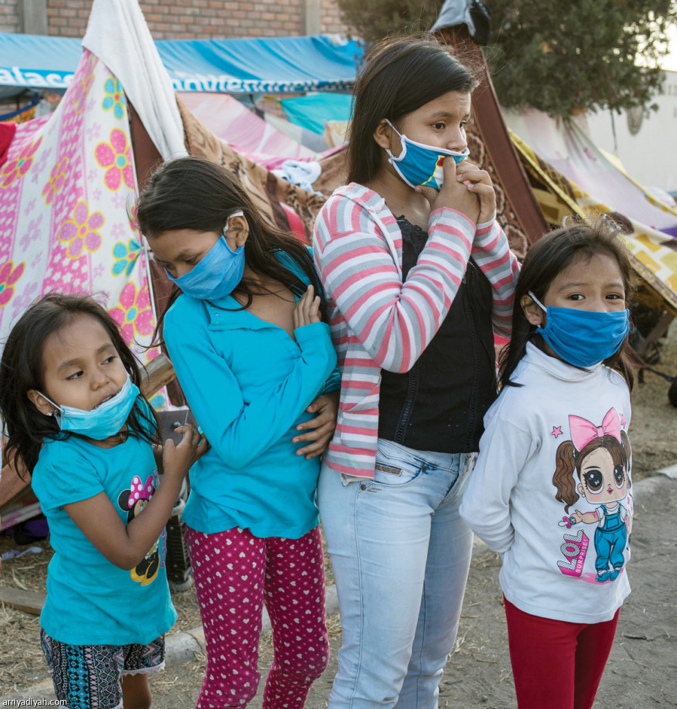 صورة التقطت أمس لأطفال ينتظرون في طابور للحصول على طعام مجاني في مخيم مؤقت خارج مطار عسكري في ليما عاصمة بيرو بعد أن تسبَّب فيروس كورونا في تعطل الكثير من الأعمال التي تكسبهم قوتهم اليومي..