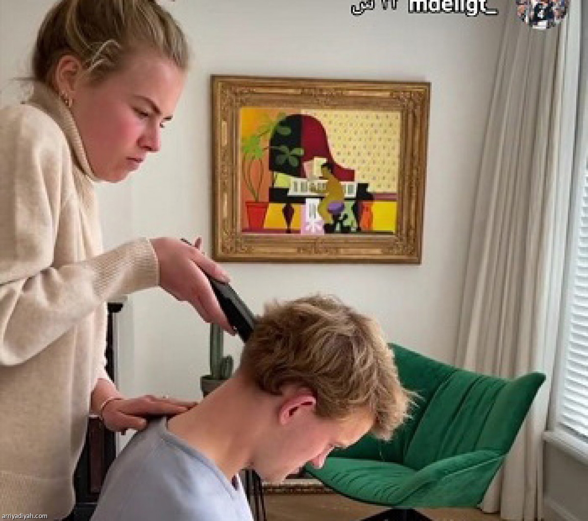 بث الهولندي ماتيس دي ليخت، مدافع فريق يوفنتوس الإيطالي الأول لكرة القدم، عبر حسابه على فيسبوك، مقطعًا لزوجته تحلق له رأسه، فيما كان يقرأ في إحدى المجلات.