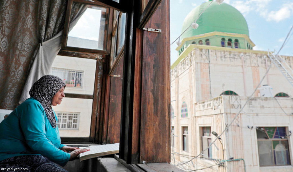 ظل مسجد النصر التاريخي في مدينة نابلس في الضفة الغربية مغلقًا أمام المصلين بسبب إجراءات الحكومة الفلسطينية لمواجهة فيروس كورونا المستجد.. صورة التقطت أمس تقرأ امرأة فلسطينية القرآن الكريم قبل الإفطار داخل منزلها المطل على الجامع الذي أعيد بناؤه قبل 85 عام