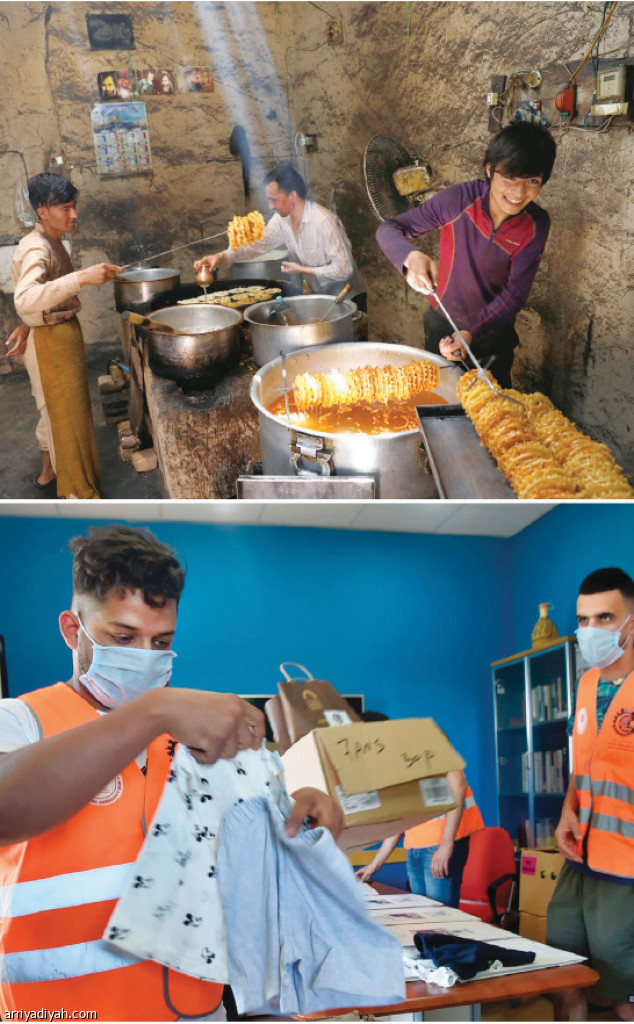 يستمر نشاط قطاعي المواد الغذائية والأعمال الخيرية في البلدان الإسلامية مع اقتراب حلول عيد الفطر.. صورتين التقطتا أمس يجهز 3 عمال أقراص حلوى داخل معمل في مدينة كابول لبيعها في العيد.. ويعد متطوعان في جمعية “ناس الخير” في الجزائر طرود ملابس للعيد