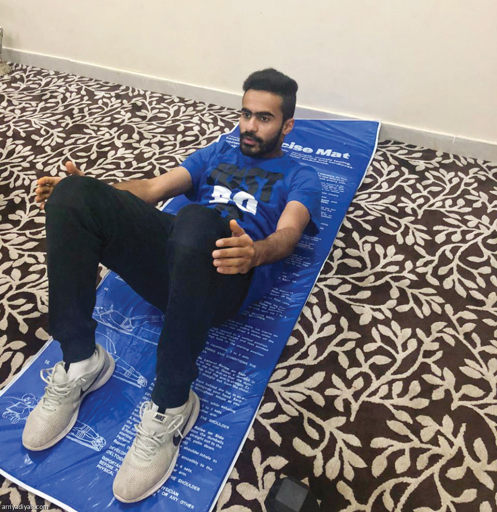 صورة التقطت أمس لعبد العزيز الحرابي يجري تدريبات البطن بمنزله في مدينة حائل(صورة خاصة بالرياضية)