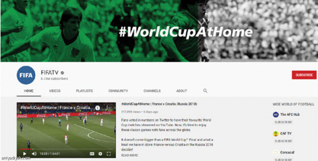 جمعت قناة الاتحاد الدولي لكرة القدم على يوتيوب “فيفا تي في” 31.497 مليون مشاهدة خلال شهر ليرتفع إجمالي المشاهدات إلى 2.755 مليار مشاهدة منذ إطلاق القناة في سبتمبر 2006.