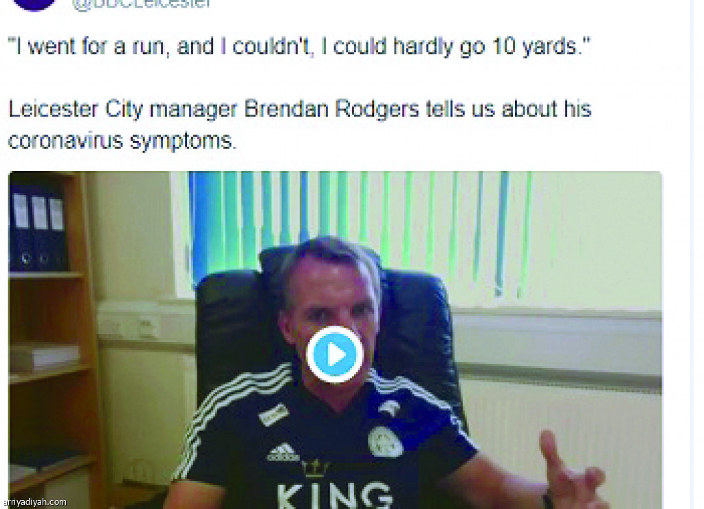 كشف الإيرلندي بريندان رودجرز، مدرب فريق ليستر سيتي الإنجليزي الأول لكرة القدم، عن معاناته وزوجته من الإصابة بفيروس كورونا.