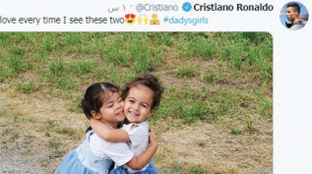 احتفى متابعو البرتغالي كريستيانو رونالدو لاعب فريق يوفنتوس الإيطالي الأول لكرة القدم بصورة نشرها عبر حساباته على السوشال ميديا لابنتيه آلانا وإيفا تعانقان بعضهما، فيما علق عليها بقوله “أقع في الحب في كل مرة أرى هاتين الطفلتين”.