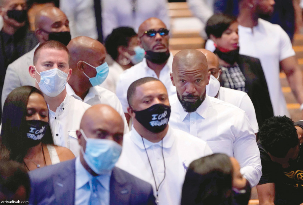 صورة التقطت أمس لشانيج تاتوم وجامي فوكس الممثلين الأمريكيين أثناء توديع جنازة جورج فلويد في هيوستن الذي شهد حضور الكثير من المشاهير في جميع المجالات