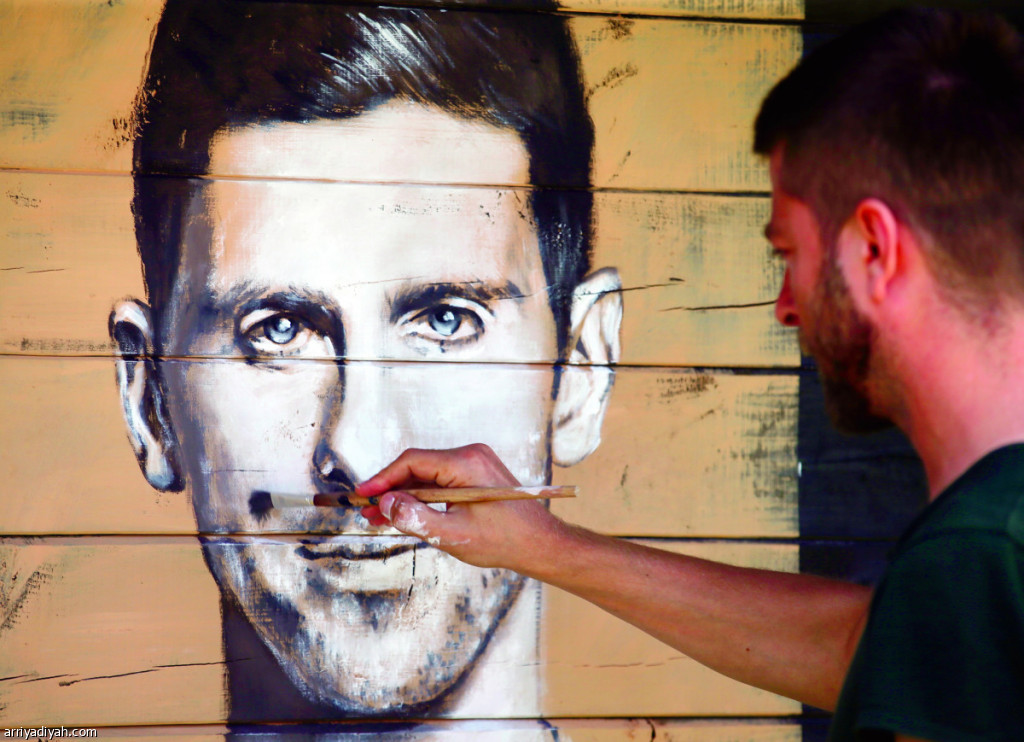 يحظى الصربي نوفاك ديوكوفيتش نجم التنس والمصنف الأول عالميًا بدعم معنوي كبير من قبل معجبيه بعد إصابته بفيروس كورونا المستجد.. وفي الصورة التي التقطت أمس ماركو جانيتش الفنان الصربي يرسم وجه مواطنه نجم التنس العالمي على منزل في أحد أحياء مدينة فوديس الصربية