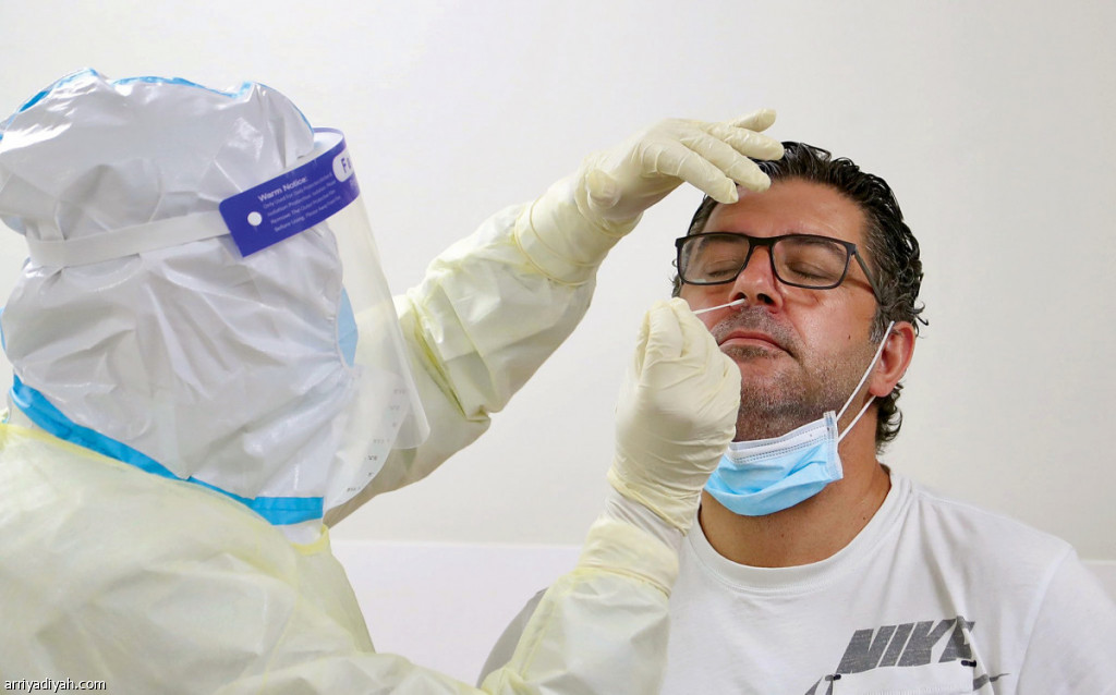 صورة التقطت أمس للبرتغالي فيتوريا مدرب فريق النصر يخضع لفحص فيروس كورونا المستجد بعد وصوله إلى السعودية لقيادة فريقه فيما تبقَّى من منافسات الموسم الرياضي وأبرزها دوري كأس محمد بن سلمان للمحترفين والأدوار نصف النهائية في بطولة كأس الملك (المركز الإعلامي ـ النصر)