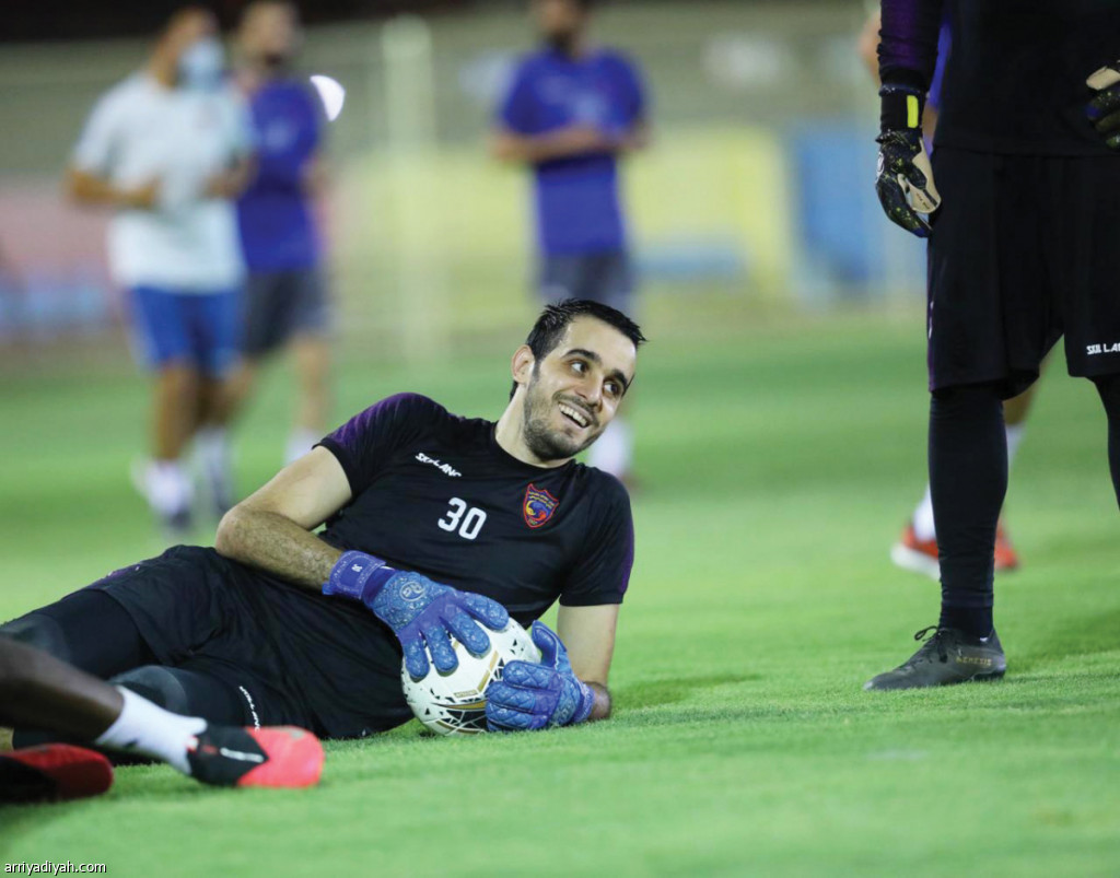 صورة التقطت أمس للجزائري مليك عسلة حارس فريق الحزم الأول لكرة القدم يمسك بالكرة في تدريبات الحراس(المركز الاعلامي - الحزم)