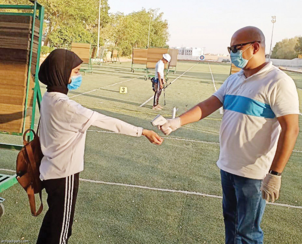 وخُصص الميدان للرماة الموجودين في الرياض دون غيرهم لحين العودة بشكل تدريجي في كافة المراكز التابعة للاتحاد، حيث طبق اتحاد اللعبة البروتوكولات كافة التي أقرتها وزارة الرياضة في وقت سابق. واشترط اتحاد السهام على مرتادي الميدان فحص الحرارة وتعبئة استمارة خاصة بالحالة الصحية والإفادة حول فيروس كورونا المستجد.