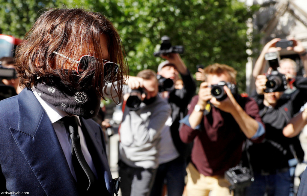 صورة التقطت أمس لجوني ديب الممثل الأمريكي أمام مرمى كاميرات الصحافيين عند وصوله المحكمة (رويترز)