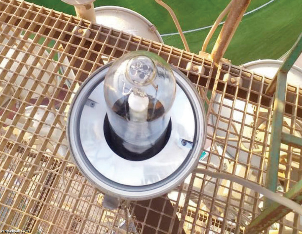 صورة التقطت أمس لإنارة النادي الأهلي الخاصة بالملعب الرئيس التي يتم تجهيزها (المركز الإعلامي - الأهلي)
