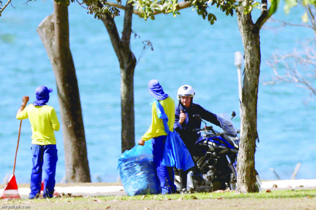 في الصورة التي التقطت أمس جاير بولسونارو الرئيس البرازيلي الذي يروج لاستعمال العقار بشكل واسع يتجول على دراجة نارية دون وضع كمامة يتحدث مع عمال في أحد شوارع برازيليا (رويترز)