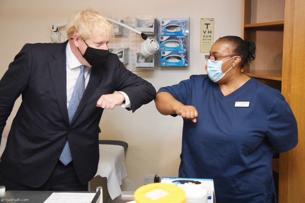 صورة التقطت أمس لبوريس جونسون يحيي على طريقته ممارسة صحية أثناء زيارته لمركز تولجيت الطبي شرق لندن (الفرنسية)
