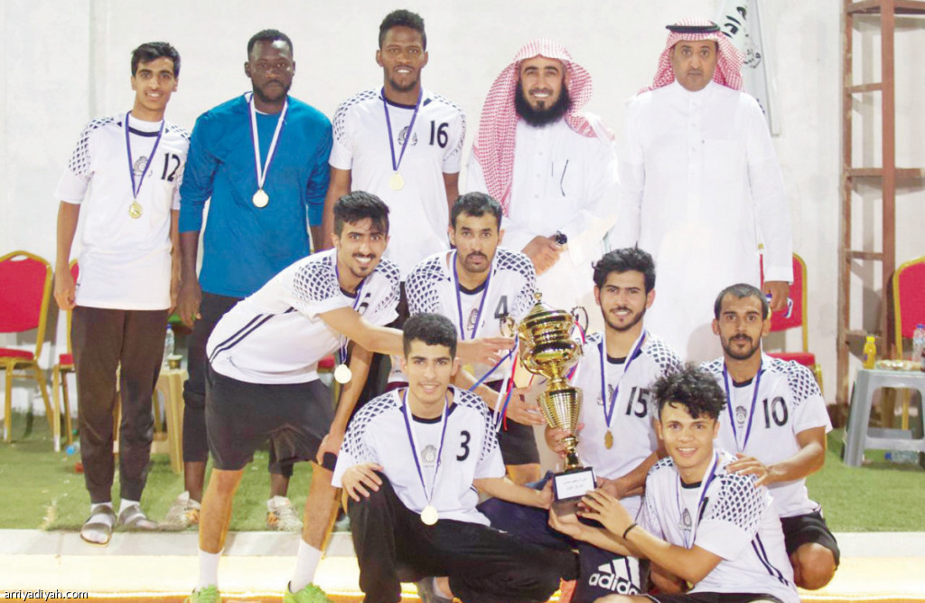 صورة التقطت أمس الأول من تتويج فريق التحدي بلقب بطولة ملعب صدى لأحياء رفحاء(المركز الإعلامي ـ اللجنة المنظمة)