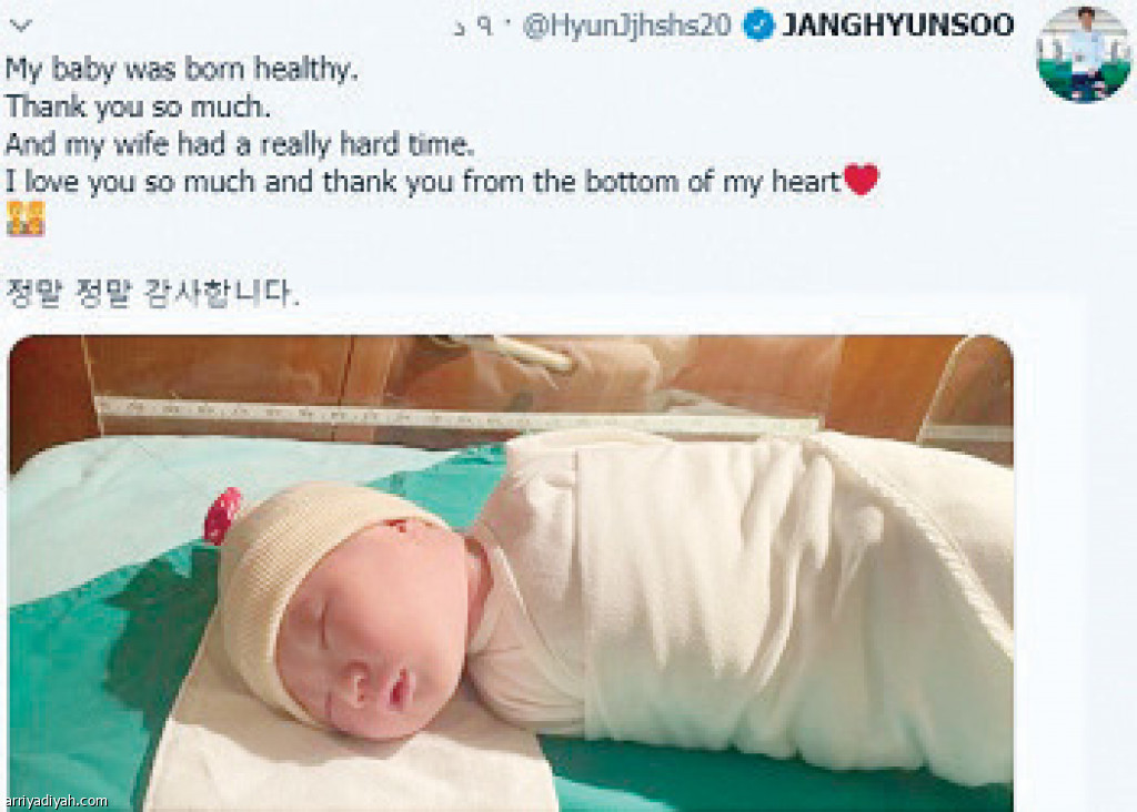 شارك الكوري الجنوبي جانج سو، مدافع فريق الهلال الأول لكرة القدم، متابعي حسابه على موقع “تويتر” بصورة مولوده الجديد، وعلق قائلاً: “وُلد طفلي بصحة جيدة.. واجهت زوجتي وقتًا عصيبًا، شكرًا من أعماق قلبي”.