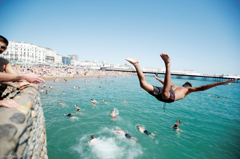 وصل عدد حالات الإصابة المؤكدة بفيروس كورونا في بريطانيا إلى 309 آلاف و796 وبلغ إجمالي الوفيات جراء “كوفيد 19” 46 ألفًا و498.. وفي الصورة رجل يقفز إلى الماء.. بينما يستمتع آخرون بالطقس المشمس على شاطئ برايتون وسط تفشي الفيروس