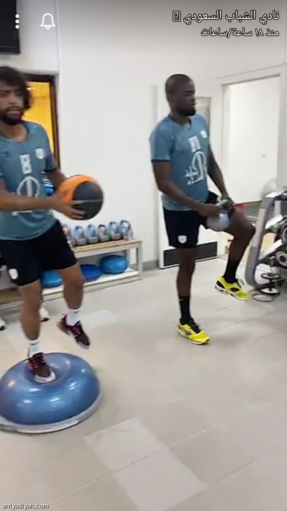 شارك حساب نادي الشباب عبر سناب شات مقطع فيديو للاعبي الفريق الأول لكرة القدم يتدربون في الصالة المغلقة مع تشغيل الأنغام الموسيقية بمكبرات الصالة.