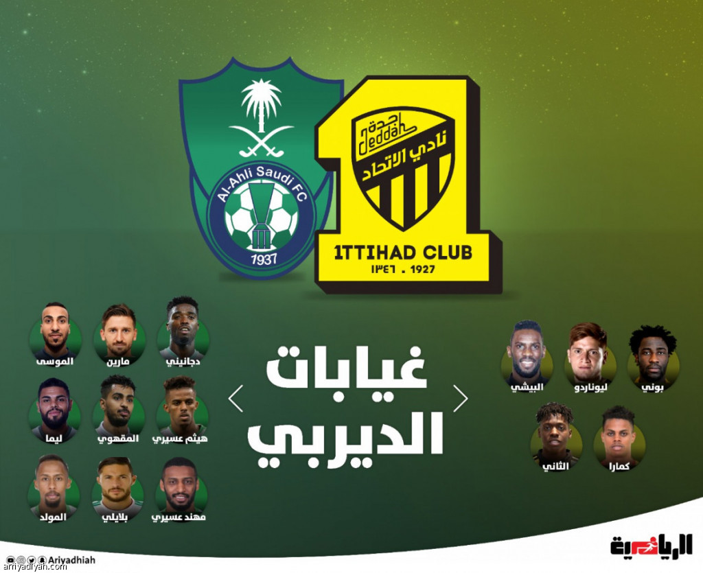 غيابات الديربي.. الأهلي 9 والاتحاد 5