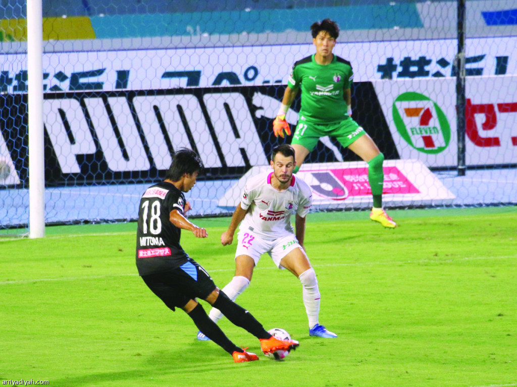 صورة التقطت أمس لكاورو ميتوما مهاجم كاواساكي يسدد الكرة معلنًا الهدف الرابع لفريقه(المركز الإعلامي ـ كاواساكي فرونتال)