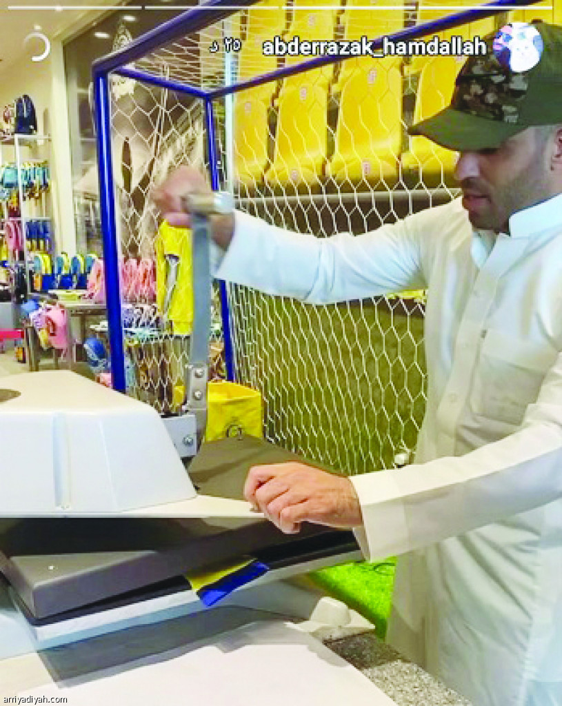 أطلَّ المغربي عبد الرزاق حمد الله، مهاجم فريق النصر الأول لكرة القدم، على متابعي حسابه في “إنستجرام” بفيديو من زيارته متجر النادي، حيث ظهر يطبع اسم ابنه محمد ريان على قميص النادي.