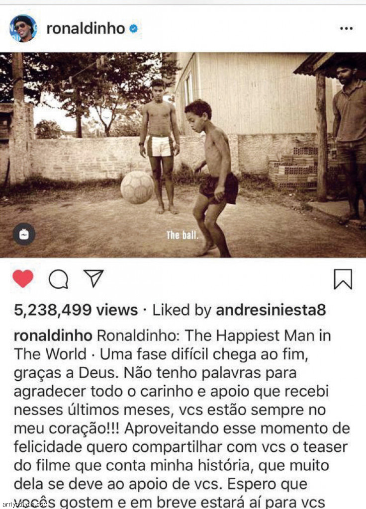 تفاعل أكثر من 7 ملايين مع الفيديو الذي نشره رونالدينيو، نجم الكرة البرازيلية المعتزل، على حساباته في إنستجرام وتويتر وفيسبوك، معلقًا فيه على بعض مراحل طفولته، ثم بزوغ نجمه كلاعب من الطراز الرفيع.