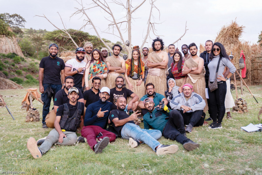صورة التقطت أمس لفريق عمل فيلم «بلال السادس» بعد نهاية تصويره في جنوب السعودية (صورة خاصة بالرياضية)