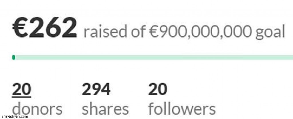 وبعد خمسة أيام من إنشاء الصفحة وصلت التبرعات 262 يورو فقط، حيث أعلن الحساب أنه سيتبرع بضعف المبلغ.