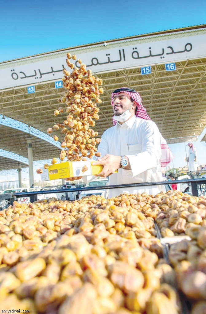 صورة التقطت أمس الأول للشاب سلطان المشيطي أحد تجار التمور يستعرض منتجاته من التمور “السكرية” في مهرجان بريدة للتمور الذي يواصل فعالياته في مدينة بريدة