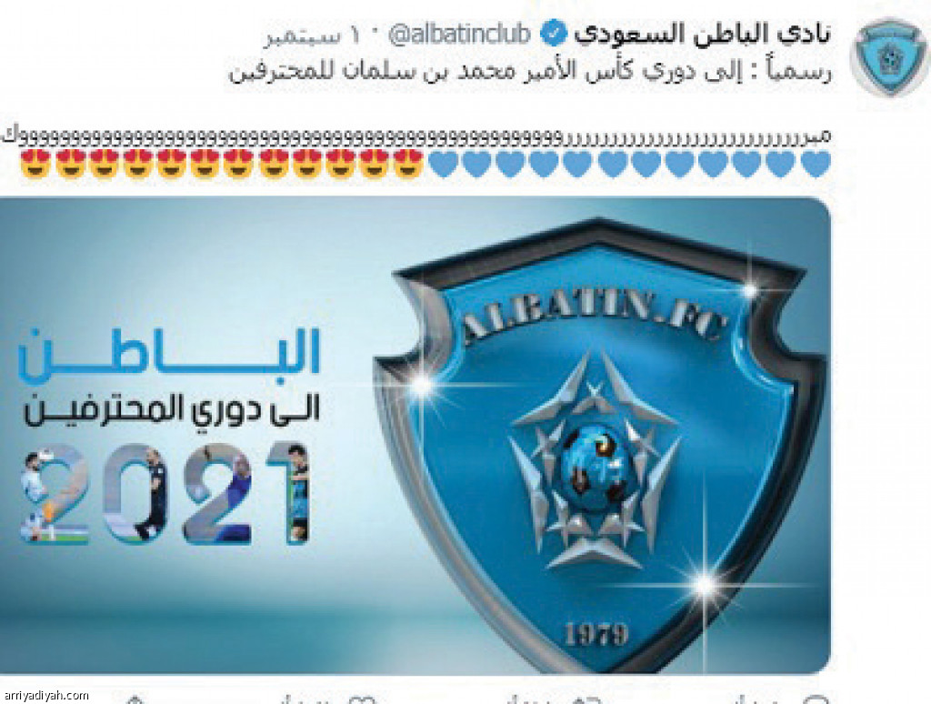 حرك نادي الباطن حسابه على موقع التواصل الاجتماعي “تويتر”، بعد حسم الصعود إلى دوري كأس محمد بن سلمان للمحترفين.