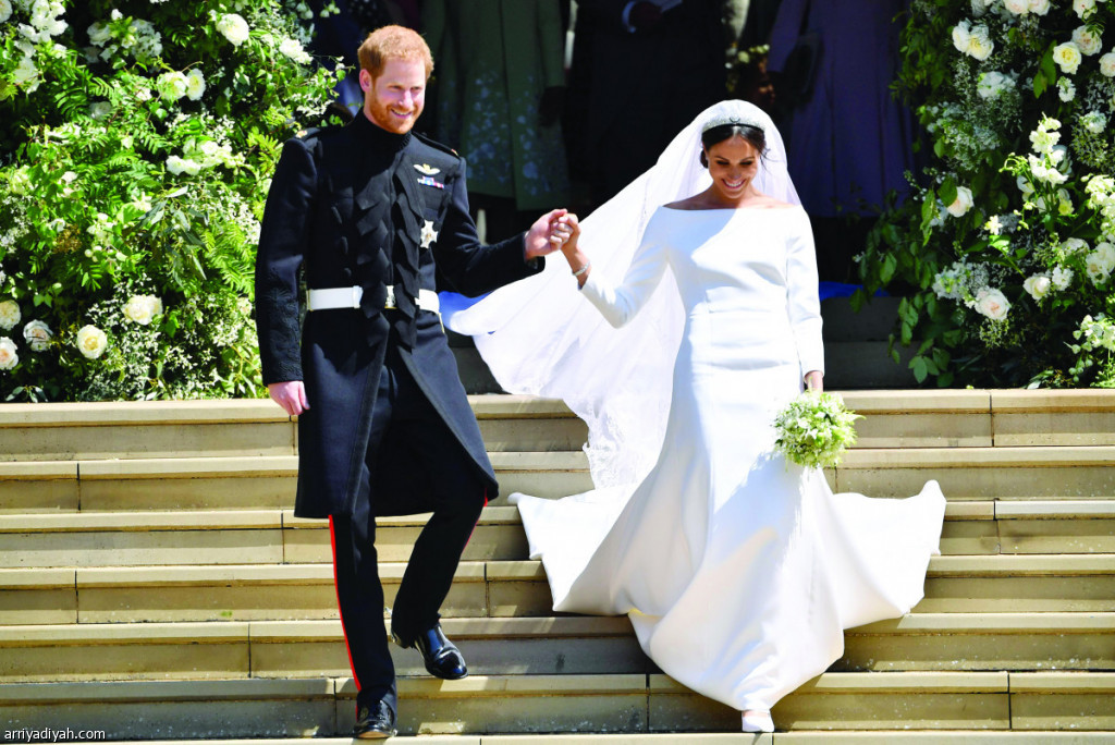 صورة التقطت في 19 مايو 2018 وبُثَّت أمس لهاري وميجان خلال حفل زفافهما(الفرنسية)