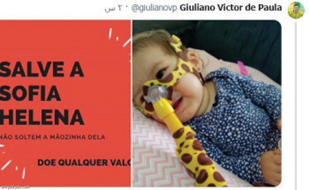 تفاعل متابعو البرازيلي جوليانو، لاعب فريق النصر الأول لكرة القدم، مع مبادرته الإنسانية لجمع التبرعات من أجل إنقاذ حياة طفلة، تدعى صوفيا، تحتاج إلى إجراء عملية جراحية دقيقة. ونشر الدولي السابق صورةً للطفلة، وعليها أجهزة التنفس الصناعي، وعلَّق قائلاً: “أتيت لأطلب مساعدتكم.. أي مبلغ هو موضع ترحيب كبير في معركة إنقاذ حياة صوفيا”.