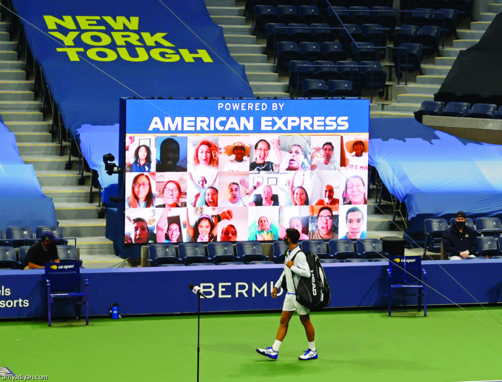 صورة التقطت أمس.. الصربي نوفاك ديوكوفيتش ينظر إلى شاشة تُظهر مشجعين يهتفون باسمه لحظة دخوله الملعب لمواجهة البوسني دامير دزومهور