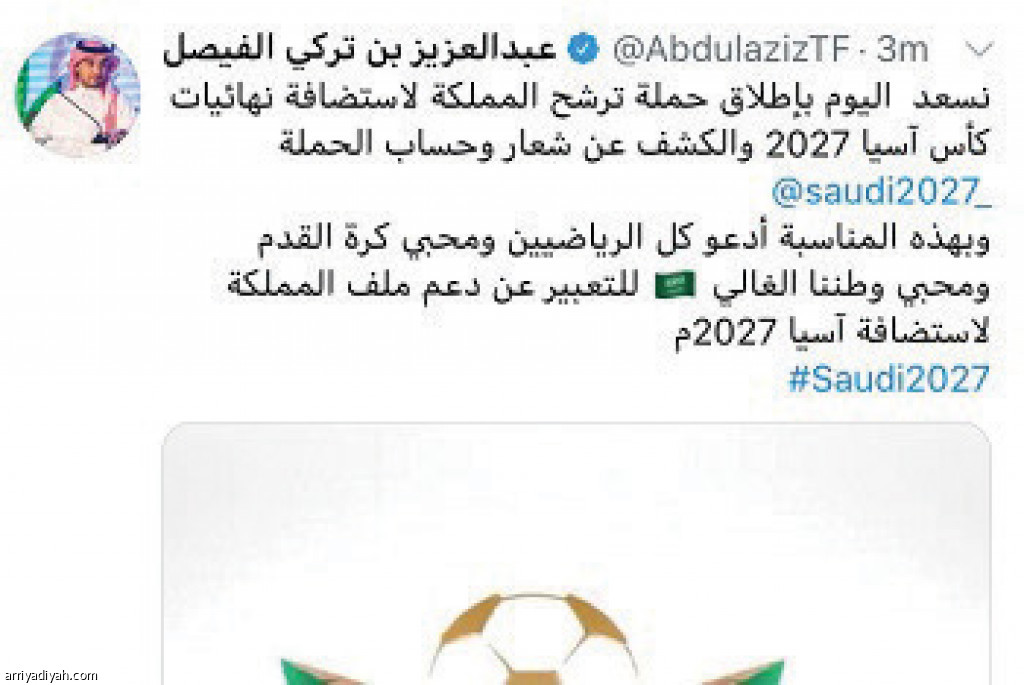 حظيت حملة ترشح السعودية لاستضافة نهائيات كأس آسيا 2027 التي أطلقها الاتحاد السعودي لكرة القدم أمس بتفاعل كبير في موقع التواصل الاجتماعي “تويتر”.