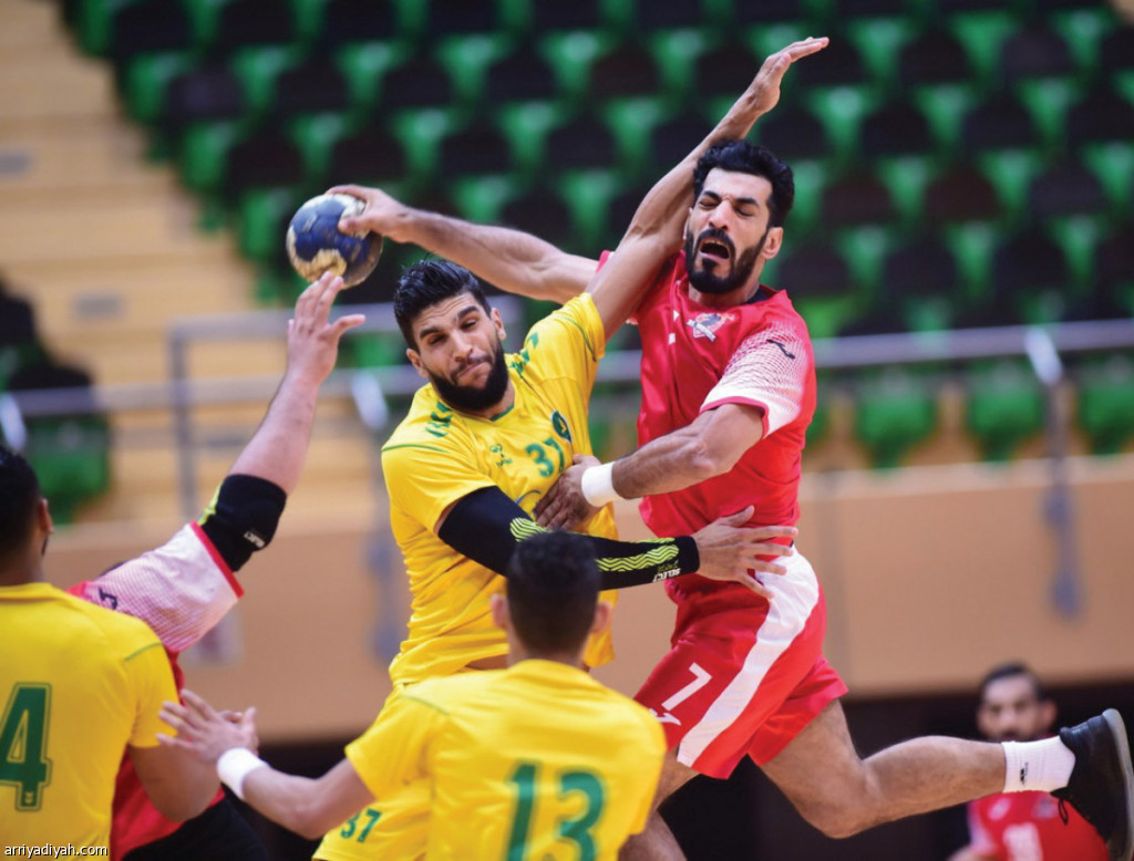 صورة التقطت أمس الأول لحسين المحسن لاعب فريق الوحدة أثناء محاولات التسديد وسط متابعة التونسي محمد الجيلاني لاعب فريق الخليج (المركز الإعلامي ـ اتحاد اليد)