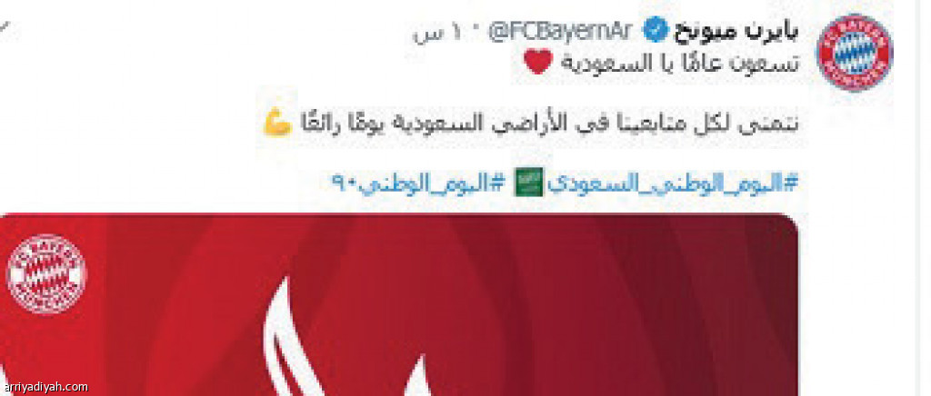 شاركت حسابات الأندية العالمية باللغة العربية على موقع التواصل الاجتماعي “تويتر” السعوديين احتفاليتهم باليوم الوطني الـ 90.